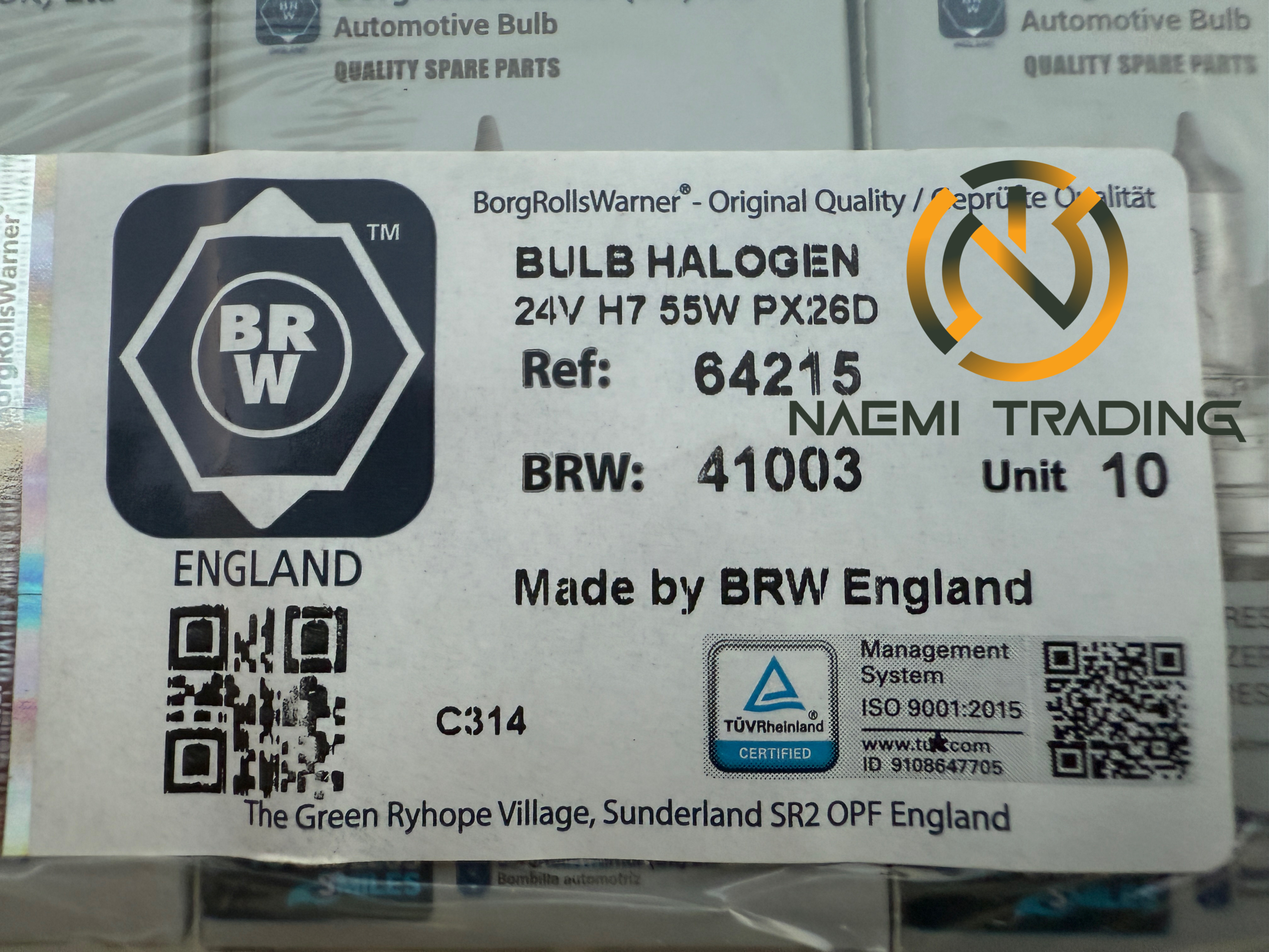 لامپ جلو اف اچ تک خار H7 بورگ وارنر BorgRollsWarner ساخت انگلیس 24 ولت